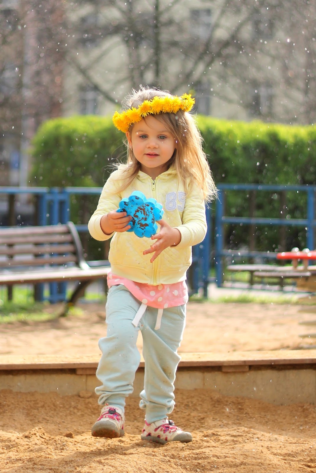 Dostat v takovém počasí Nelu domů je nemožné, takže my se s Juli krčili pod stromem, zatímco Amálka si vesele plácala do bábovek :-D.