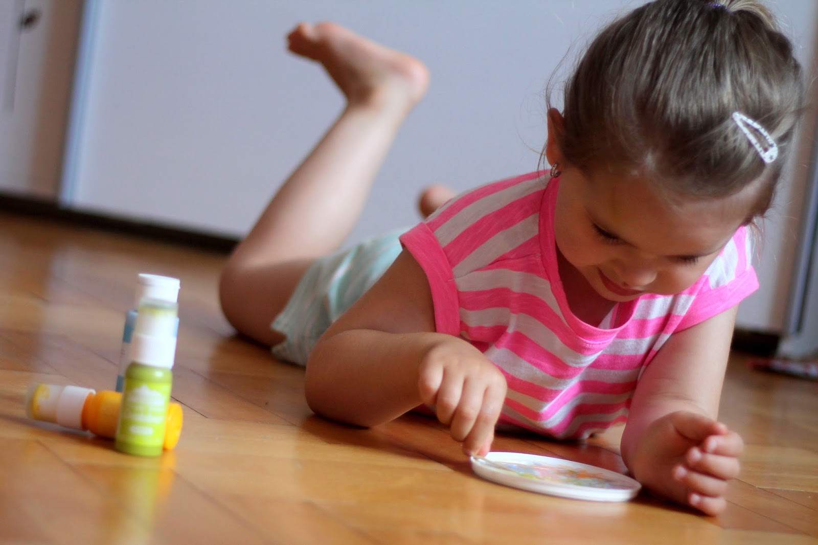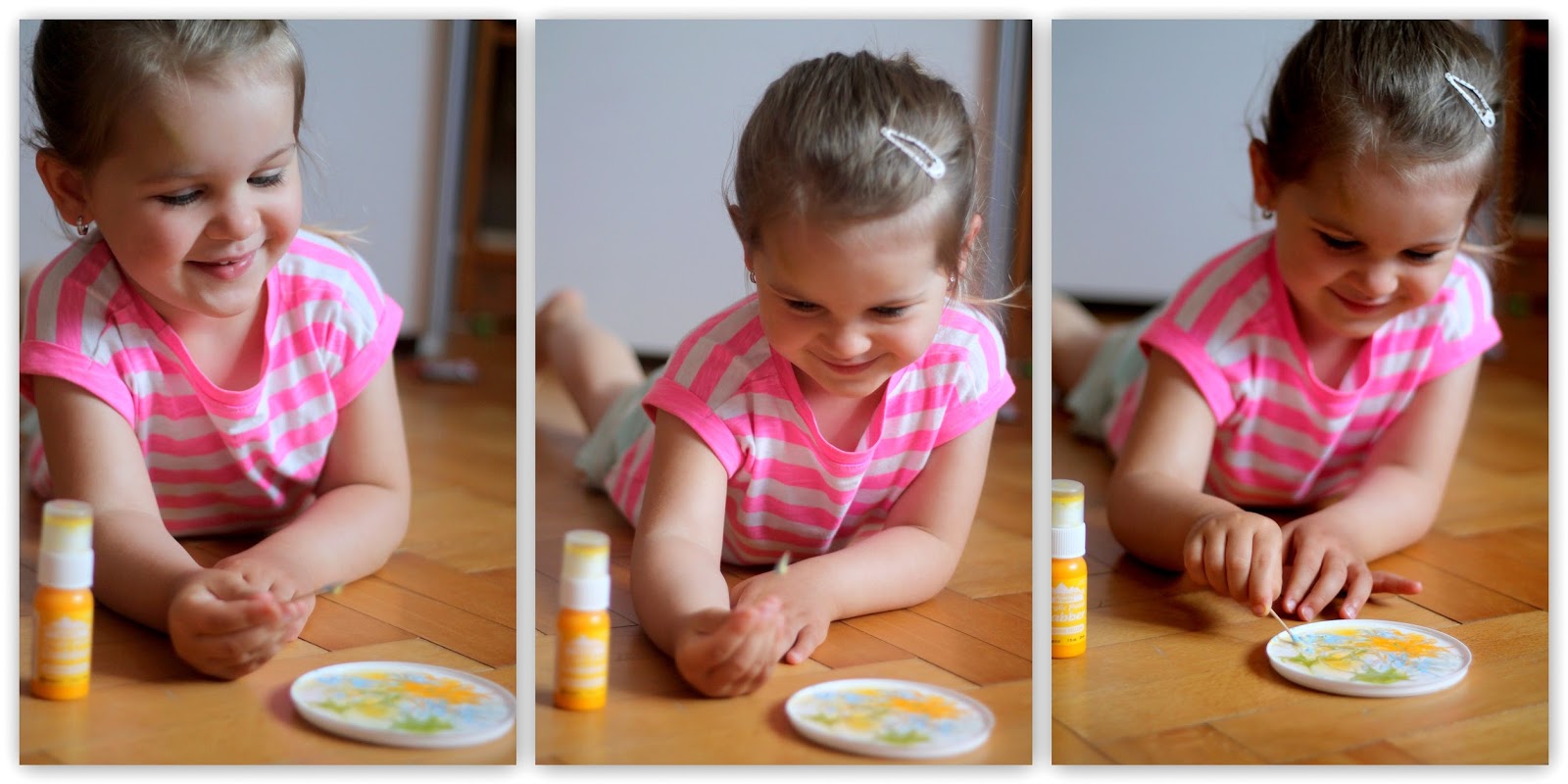 - chvíli malovala a pak sledovala jak na vzduchu lepidlo zasychá až z něj vznikla „barevná guma“ 😀