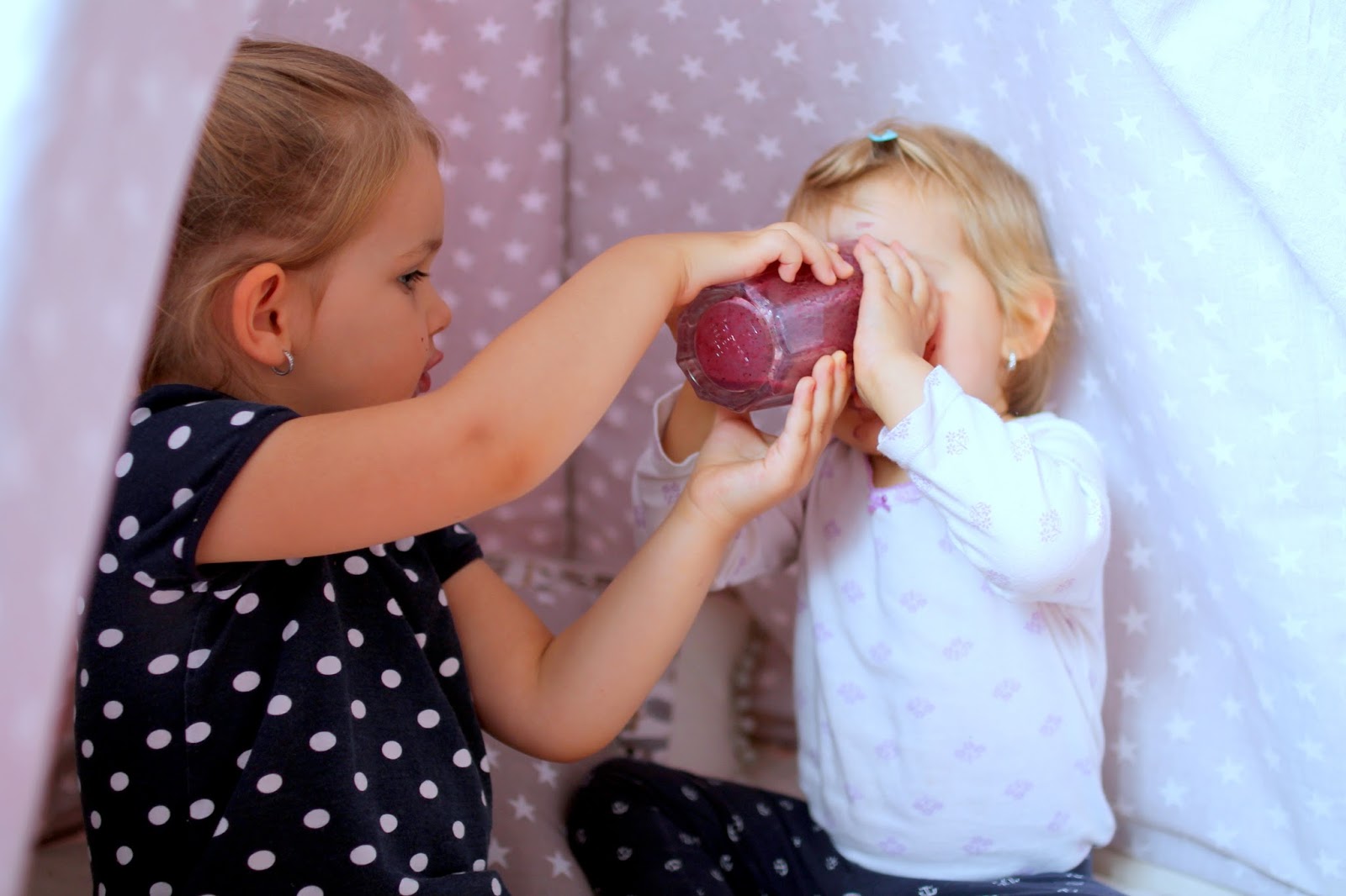 Vcera jsem delala Nele pomazanku a Julince jsem mixovala polevku, protoze jeste vse nepokouše. Sobě pak ráno ovocný a holkám též. 🙂