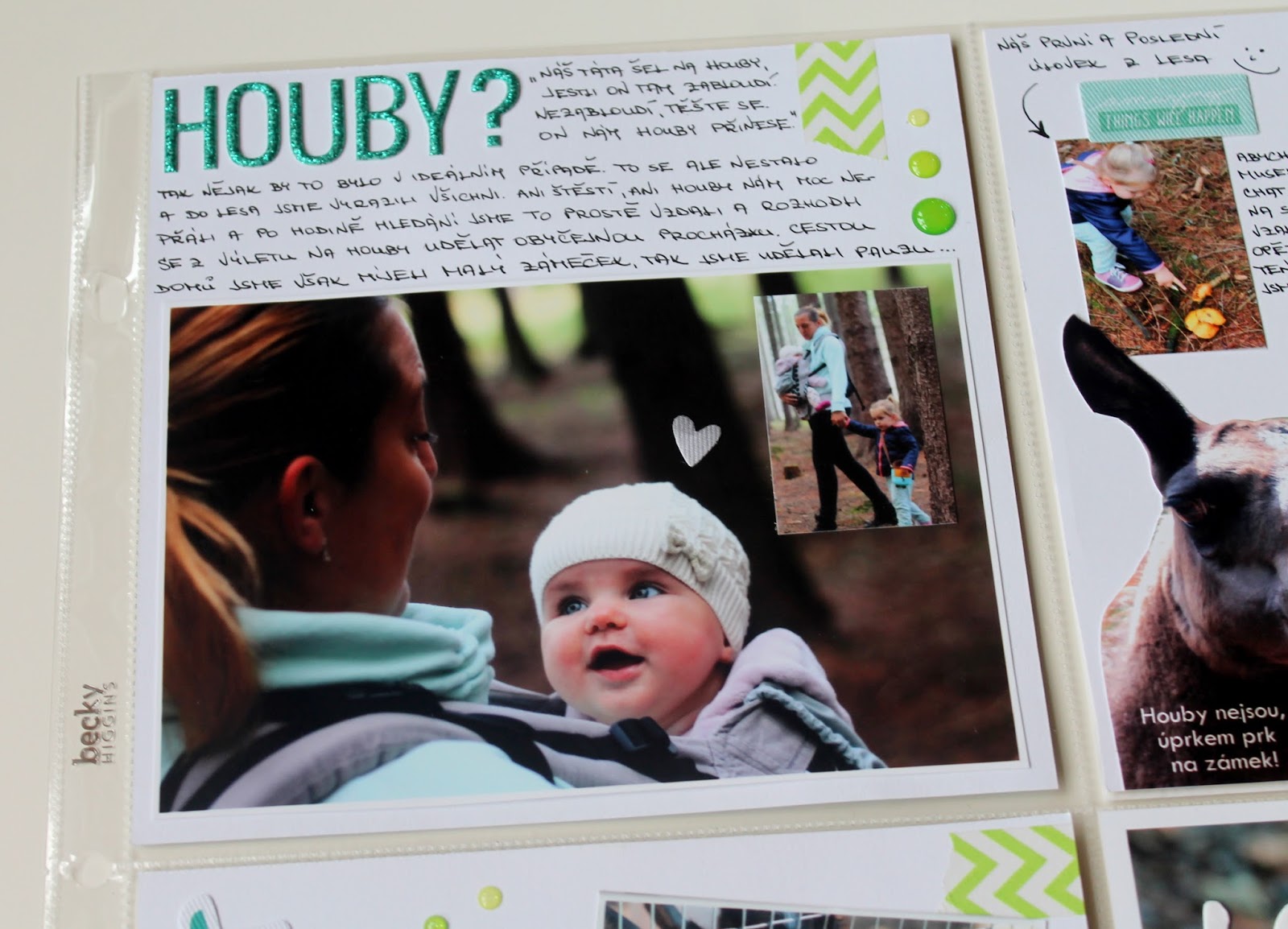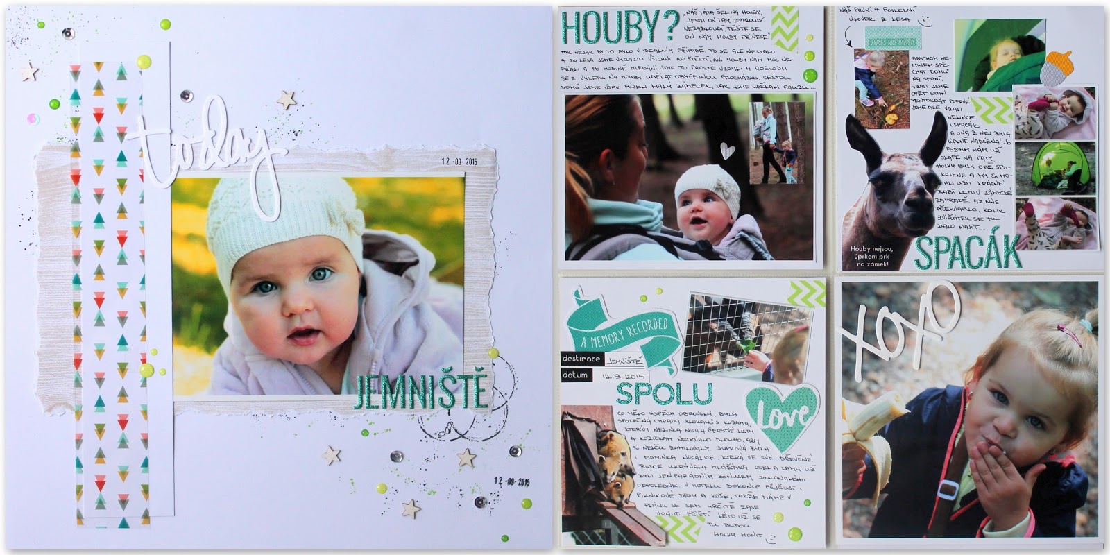 Velká stránka byla radost. Zprvu jsem hodně bojovala s formátem téhle fotky, protože ji mám moc ráda. Chtěla jsem ji udělat co největší, dokonce jsem ji nechala vytisknout ve velikosti 30*21cm, ale do alba už to bylo moc, nevynikla pak ani samotná fotka. Takže tu už máme doma zarámovanou a pověšenou na stěně a do alba jsem hodila 15*18cm formát.