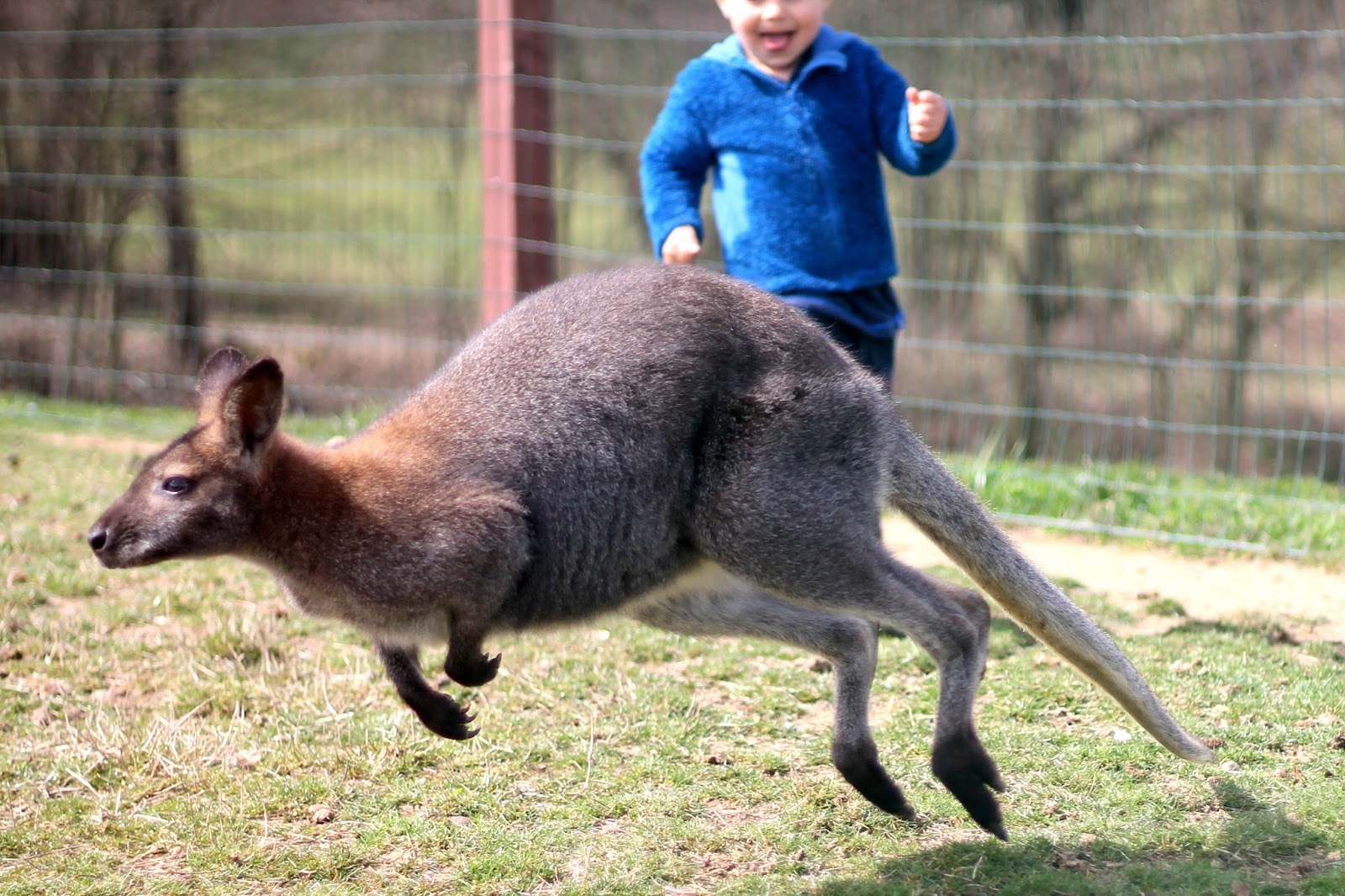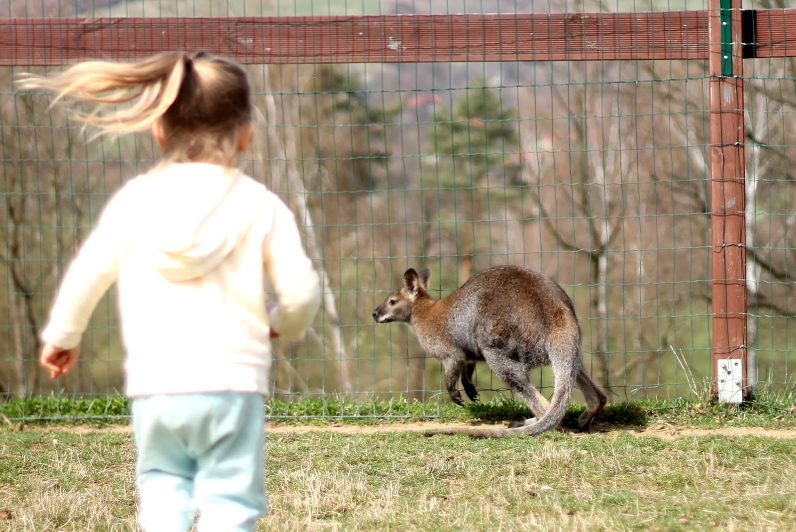 To chození po trávě. My si toho nevšimli a na trávě byli všude všichni, takže jsme byli přímo u zvířátek blízko, včetně krmení a koukáí se přes plot, tak to nás naštěstí neomezilo 🙂