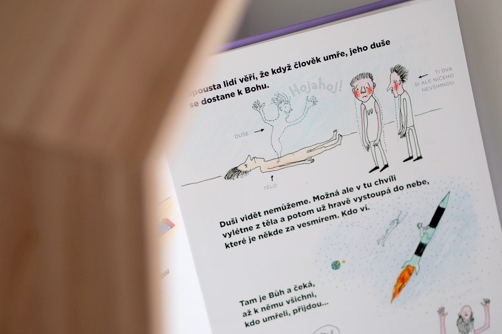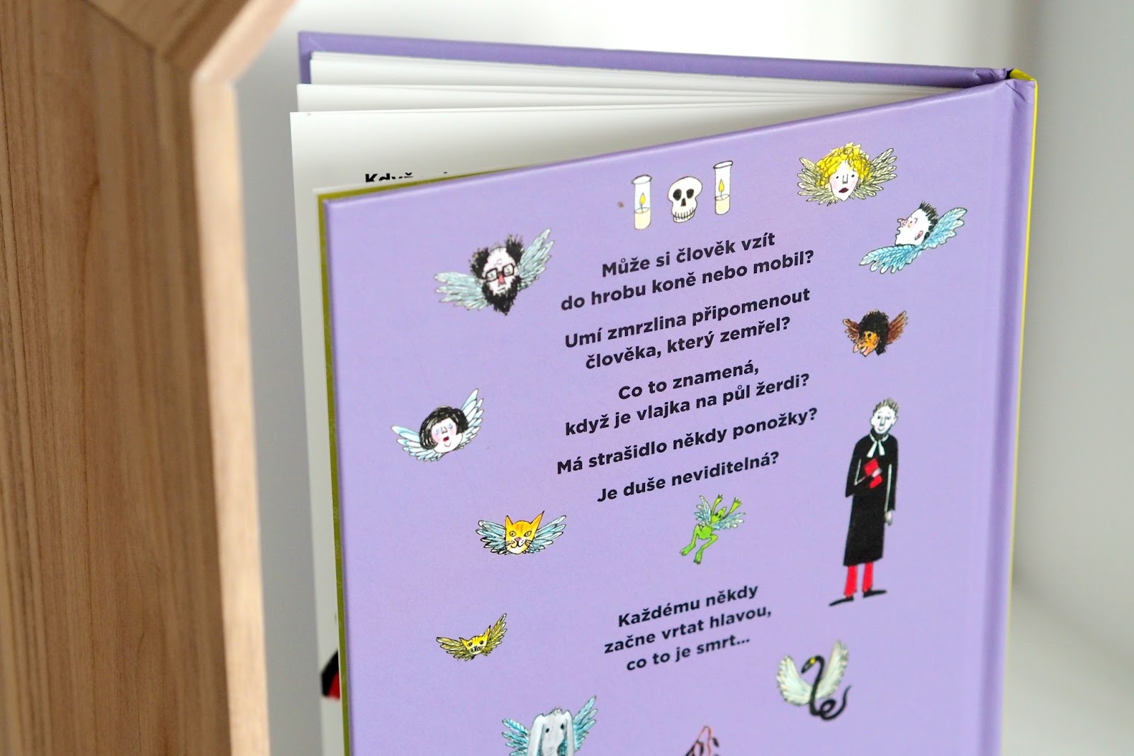 Ono téma samotné tak trochu nutí držet si od téhle literatury odstup. Když v rodině někdo blízký onemocní nebo zemře, už to není jen o smutku a truchlení našem. Jsou tu ještě ony, naše děti, kterým se musíme nebo budeme muset věnovat, vysvětlovat a být jim oporou, ať už se se situací budou vypořádávat jakkoli. Pokud zemře v rodině někdo blízký nebo třeba i domácí mazlíček a vy máte doma předškoláčka / malého školáčka, je tahle knížka určitě vhodná.Komiksově názorné ilustrace, které vás celou knihou provedou, vám dovolí se rozhodnout, jaké vysvětlení smrti se vám líbí nebo které uznáváte právě vy. To musím na knize vyzdvihnout. Líbí se mi, že nevede jen jedna cesta, která by tady řekla, jak má vypadat pohřeb nebo třeba co následuje po smrti. Otázky, na které se děti nejspíš ptají a na které my budeme hledat odpovědi.