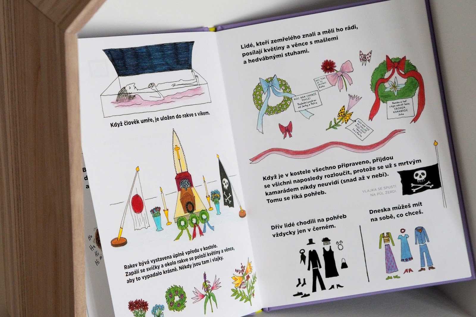 Děti se v knížce setkají i s možností, že tělo jako takové nemusí být nutně uloženo v zemi. Existuje i zpopelnění, a tak si myslím, že pokud vás taková událost bude čekat, v knížce najdete i svou verzi.Vzala bych tuhle knihu dost jako příručku toho „co se stalo a co teď bude následovat“. Další knihy, které budu představovat, jsou spíš příběhové a takové povídkové. Tahle se s ničím nemaže a ukazuje vše reálně jak to je a bude dál. Pořád dává ale na výběr vám, jakou verzi si vyberete.
