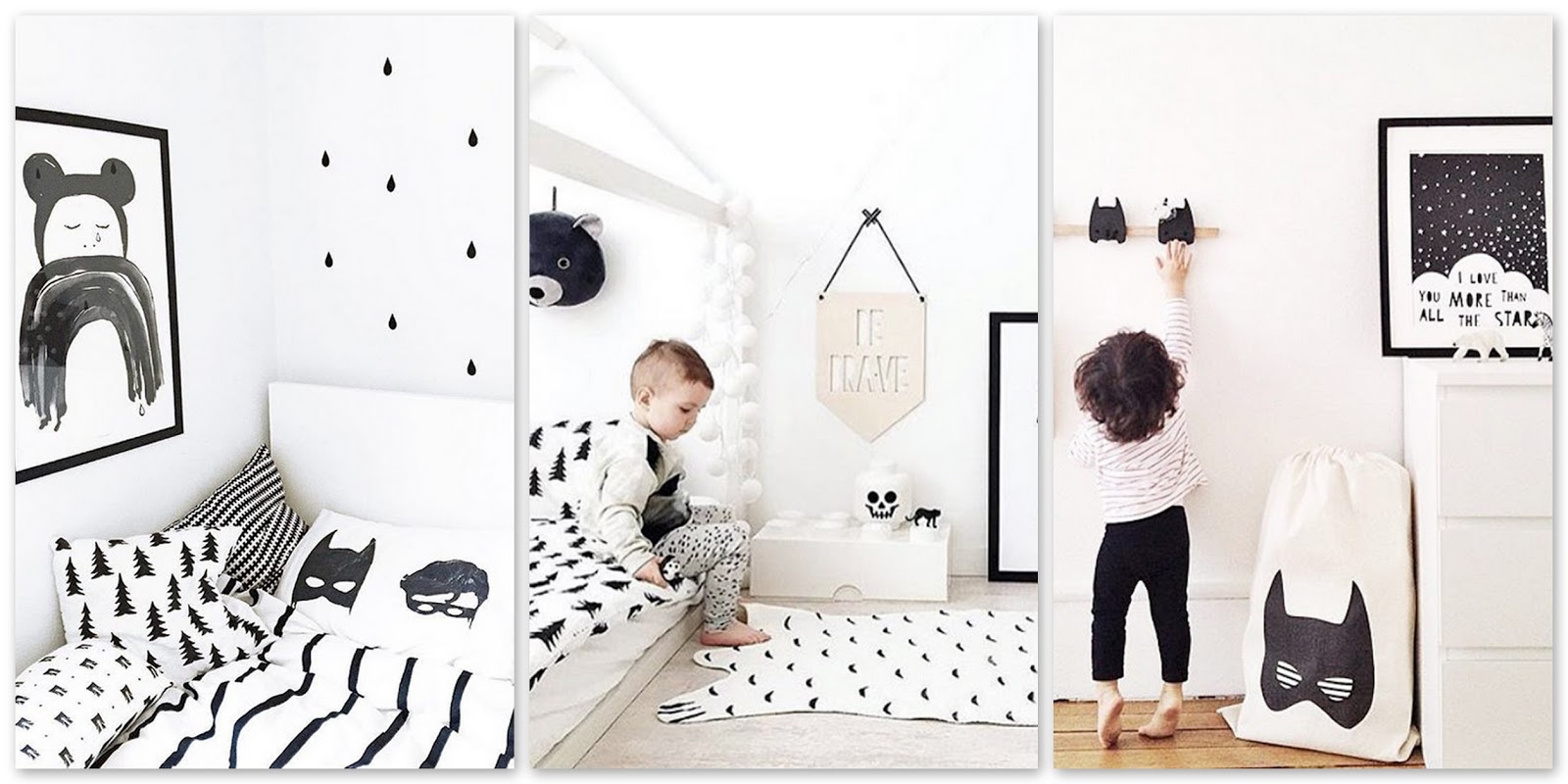 Tohle je řešení pro všechny maminky, ve kterých se pere touha po čistotě, ale zároveň chtějí uspokojit dětskou touhu po barvičkách. Pokojík nemusí být nutně z černé a bílé. Stačí černou doplnit odstíny jedné libovolné barvy a trochy šedé. Vše k sobě krásně ladí, pastelová barvička udělá jen světloučký nádech, ale pokojíček určitě zútulní.