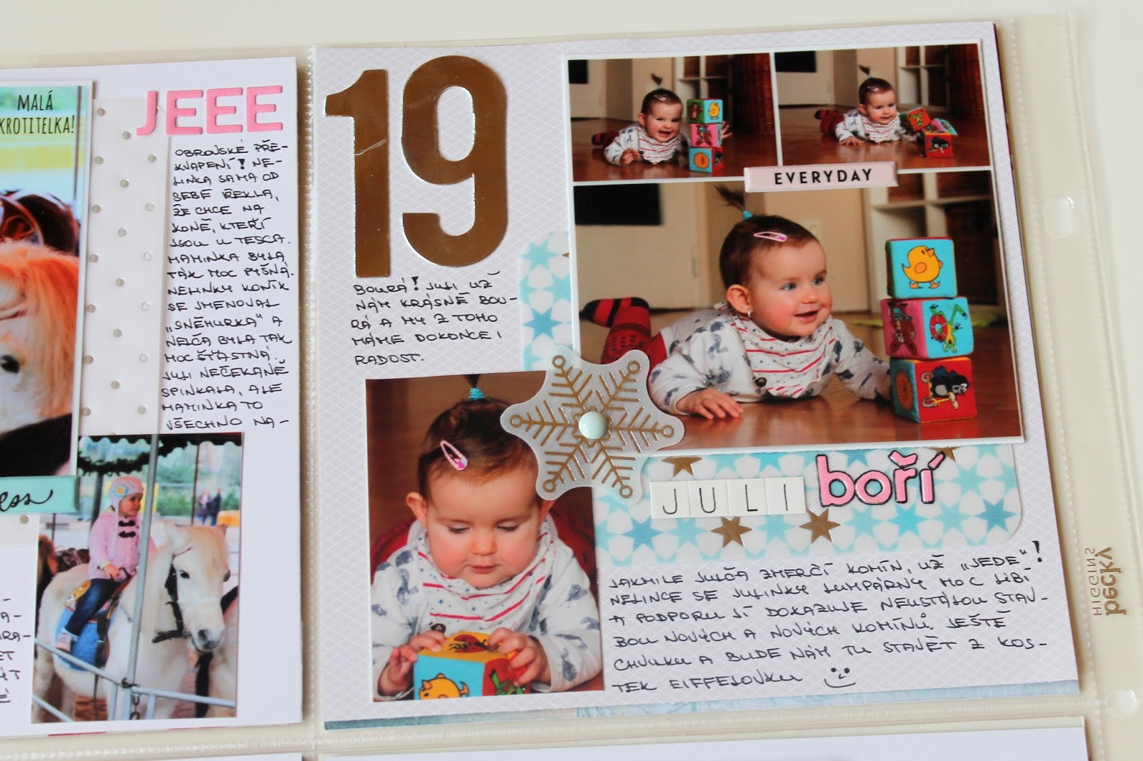 Celý advent dělám v albu do kapsy, která je rozdělena na čtyři „šestkové“ čtverce (šestkové znamená velké 6×6 palců, pro ty které z Vás si vždy říkají, o čem to mluvím). Jsem moc ráda, že jsem formát zvolila a ještě radši, že jsem setrvala a vydržela téměř celý advent – téměř proto, že ještě nejsem u konce :-).