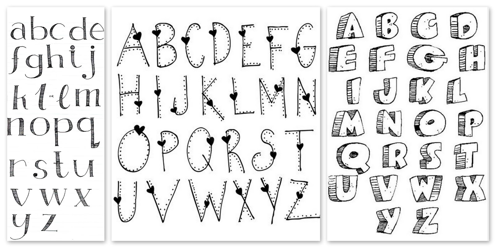 K vidění byly v přehledu použité například tyto „doodles“ abecedy: