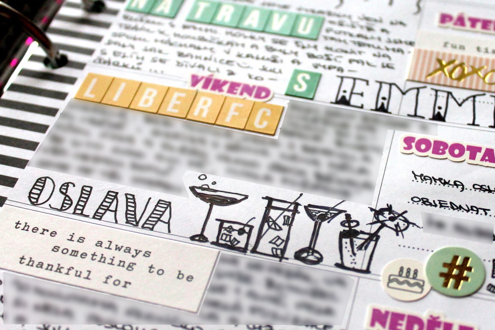 Na následující stránce jsou k vidění rovnou dva typy písma a pak pár party skleniček, protože na oslavě se vážně jedlo a pilo ve velkém :-).