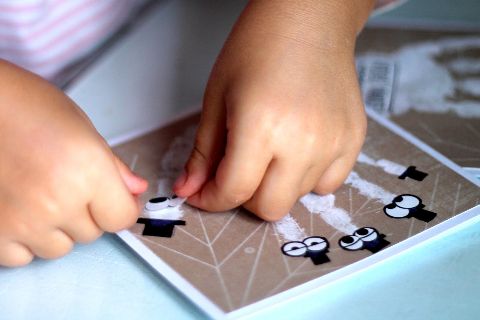- Nelinka si vzala samolepky očí, které jsme za pár kaček sehnaly v papírnictví