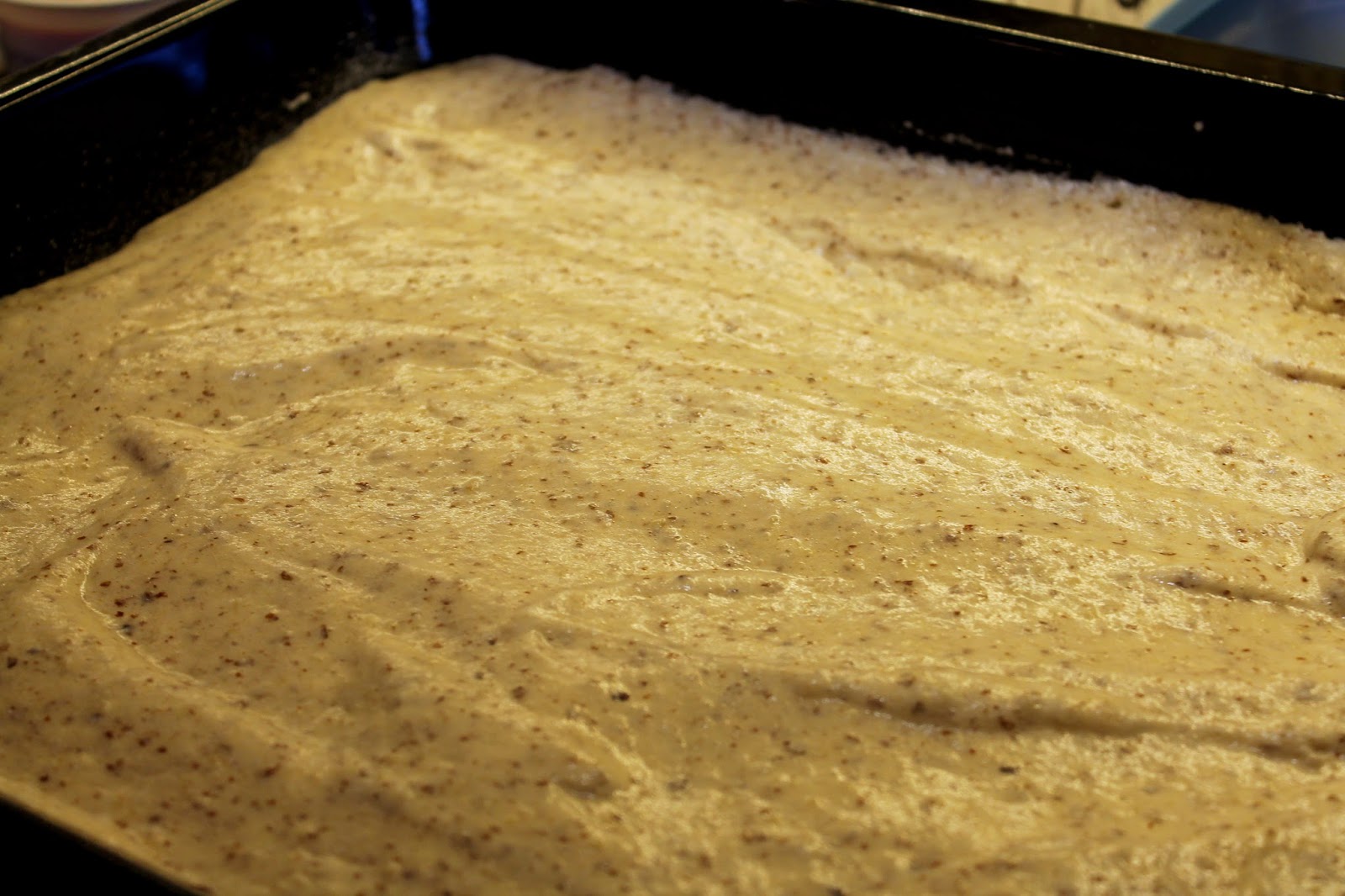 - vznikne Vám pěnová hmota, kterou vylijete na vymazaný a vysypaný plech (vysypat můžete místo mouky třeba kokosem)