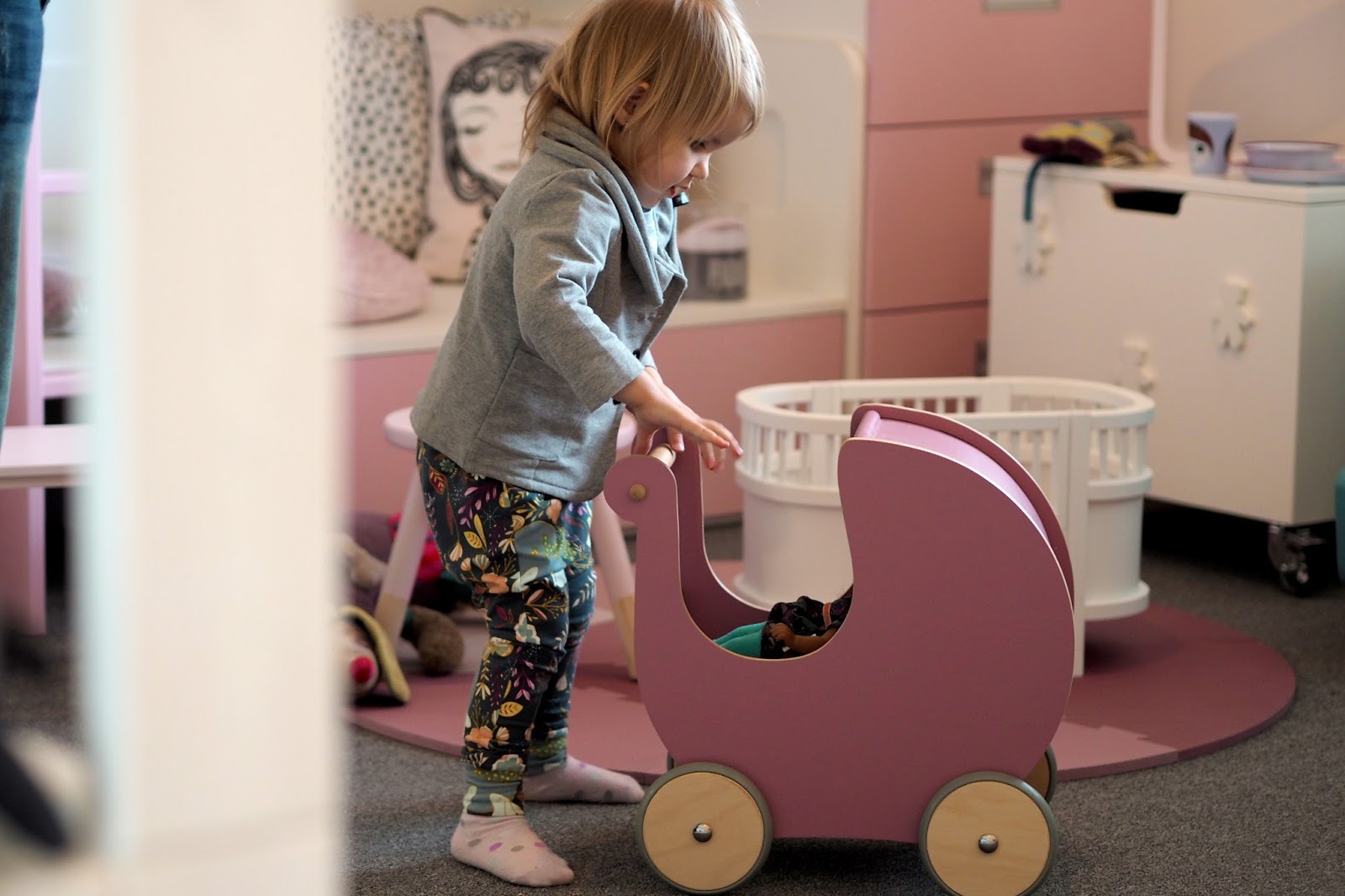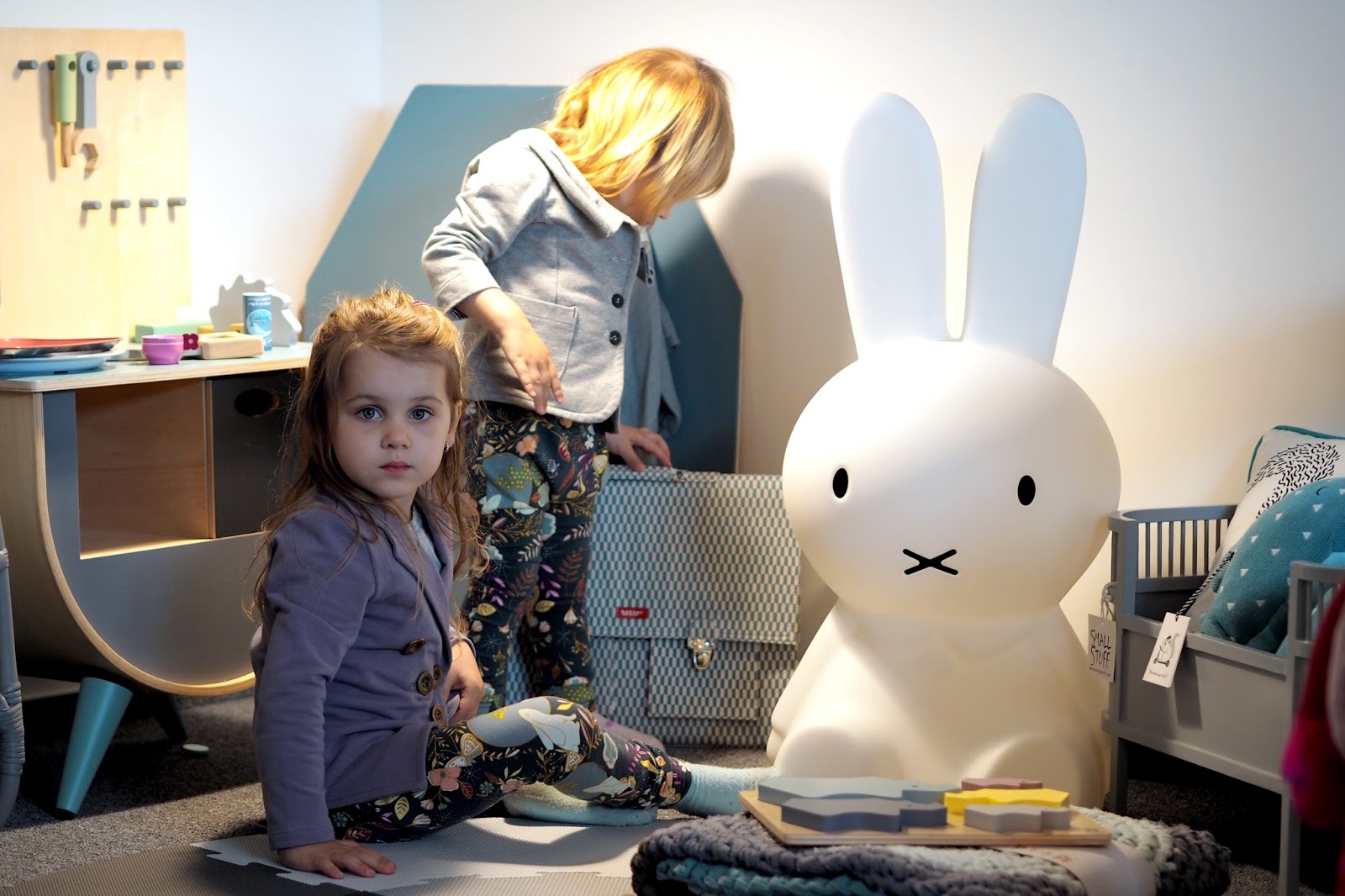 V pokojíčkových webech se hrabu už od loňského listopadu, takže mám docela přehled a věci jsem poznávala. Je parádní vidět je ale v reálu. U hodně věcí jsem byla překvapená, hlavně co se velikosti týče. Měla jsem pocit, že vše musí být malé, protože jde o věci do dětských pokojů, takže jsem nebyla troškař a úložného prostoru na hračky vzala hned několik. Dva boxy do IKEA polic (klasika expedit, dnes kallax) a k tomu ještě dva veliké pytle, protože hraček je přeci dost. Jooo ta velikost 😀