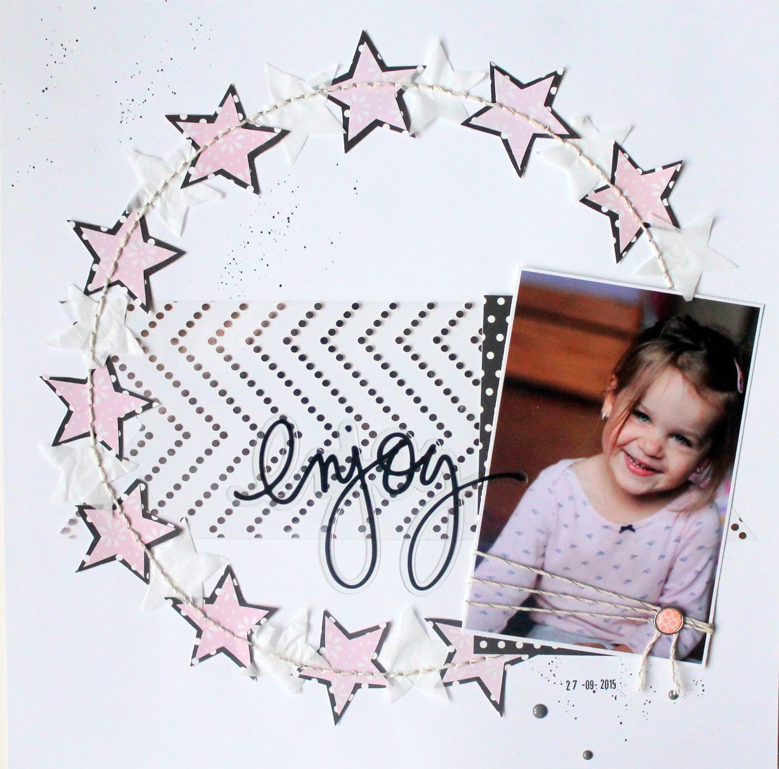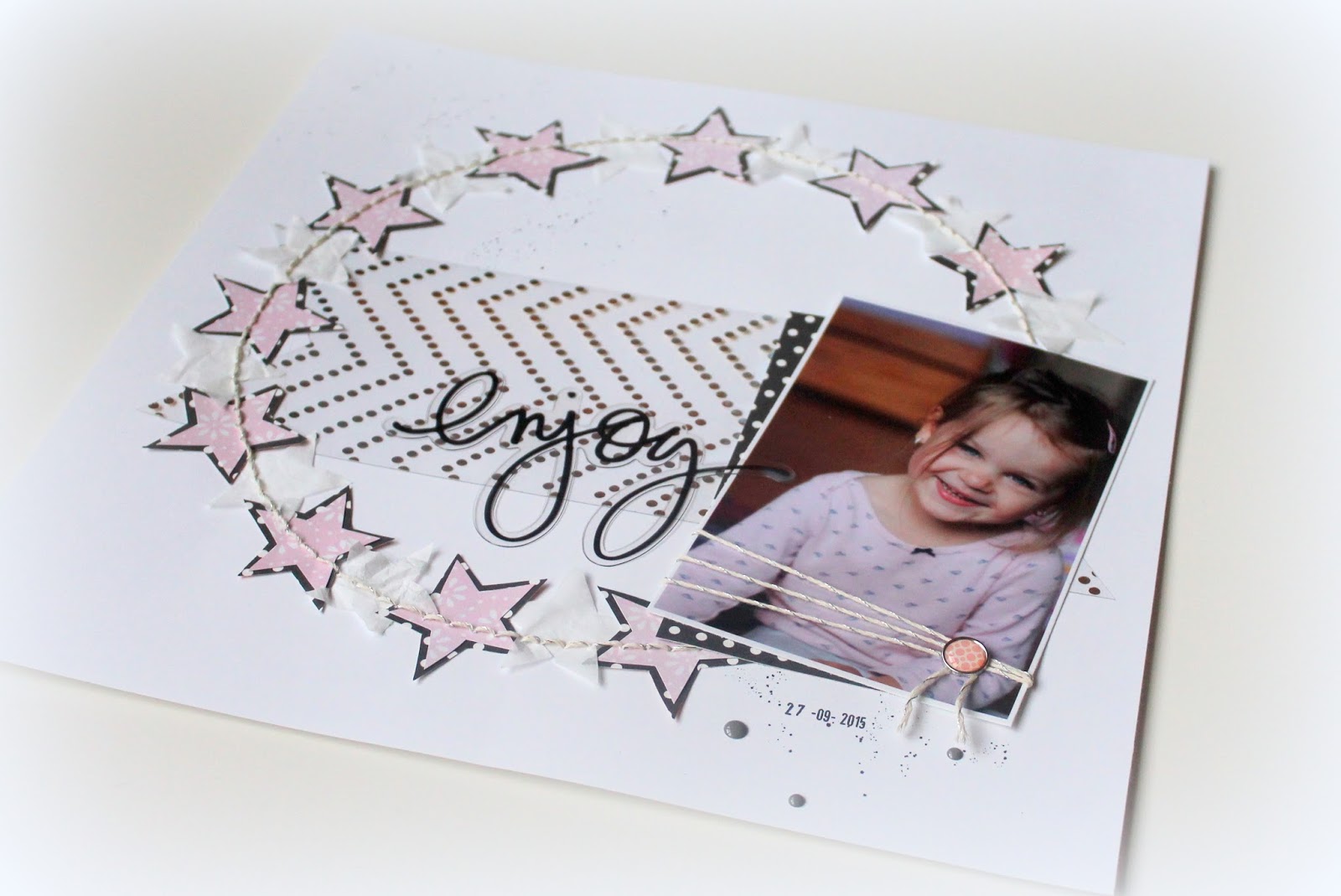 This is a gorgeous page! Love the stars, the stitched circle, and that super sweet photo! Thanks so much for sharing with us at Scrapbook Challenges!