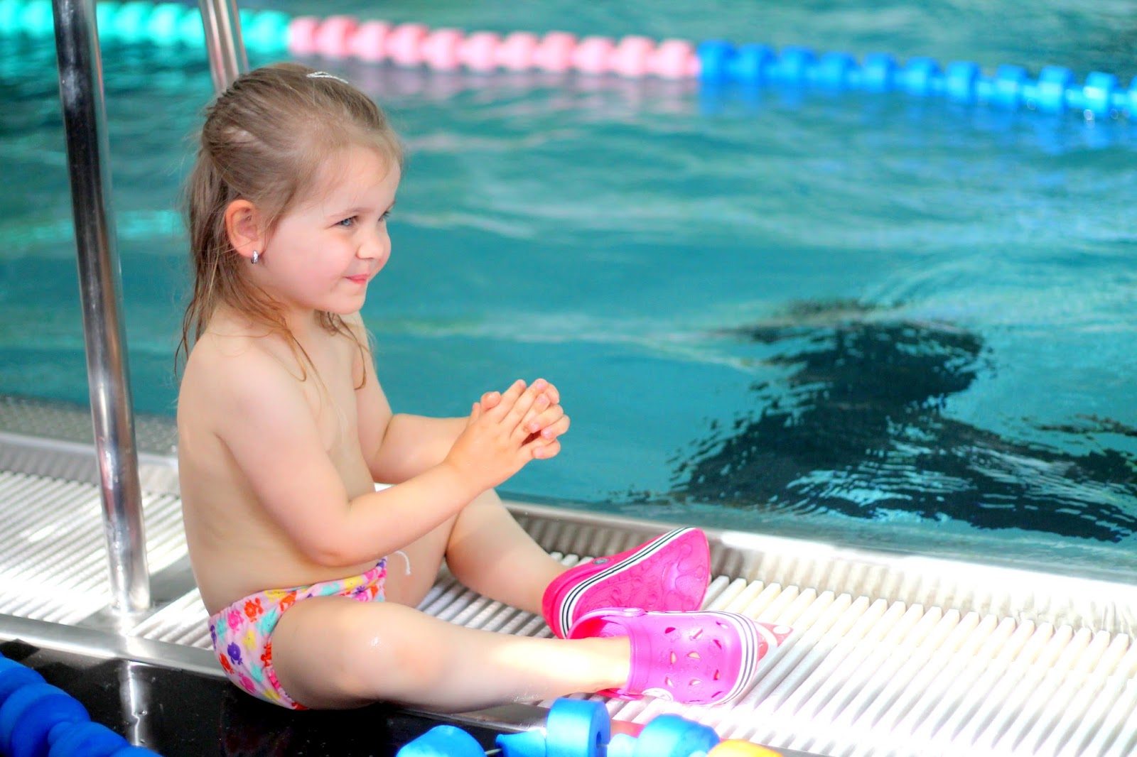 Každé dítko na jejich plavání má totiž crocsy a jim podobné, které samozřejmě pozornost dětí získají. A protože výjimka potvrzuje pravidlo, jsou boty k vodě jediné, které si může vybrat sama a je šťastná, že je má. Opět v nich vlastně jen chodí okolo bazénu a pak hop do vody, takže mi její šťastný výraz za to stál a tady jsou. Tyhle konkrétní bazénovky značky Coqui jsme vybraly TADY, když jsme brali Jůle i capáky. Nejsem dokonalá, nejedu striktně po barefoot kolejích, ale hledám kompromis mezi mým a dětským názorem. Skvělé je, že v nich Nelča neuklouzne, pásek vzadu hezky drží nožku a ani trochu nevadí, že jí jsou zatím asi o číslo větší. Žádné sprinty v nich nedělá a jsou k vodě bezpečné.