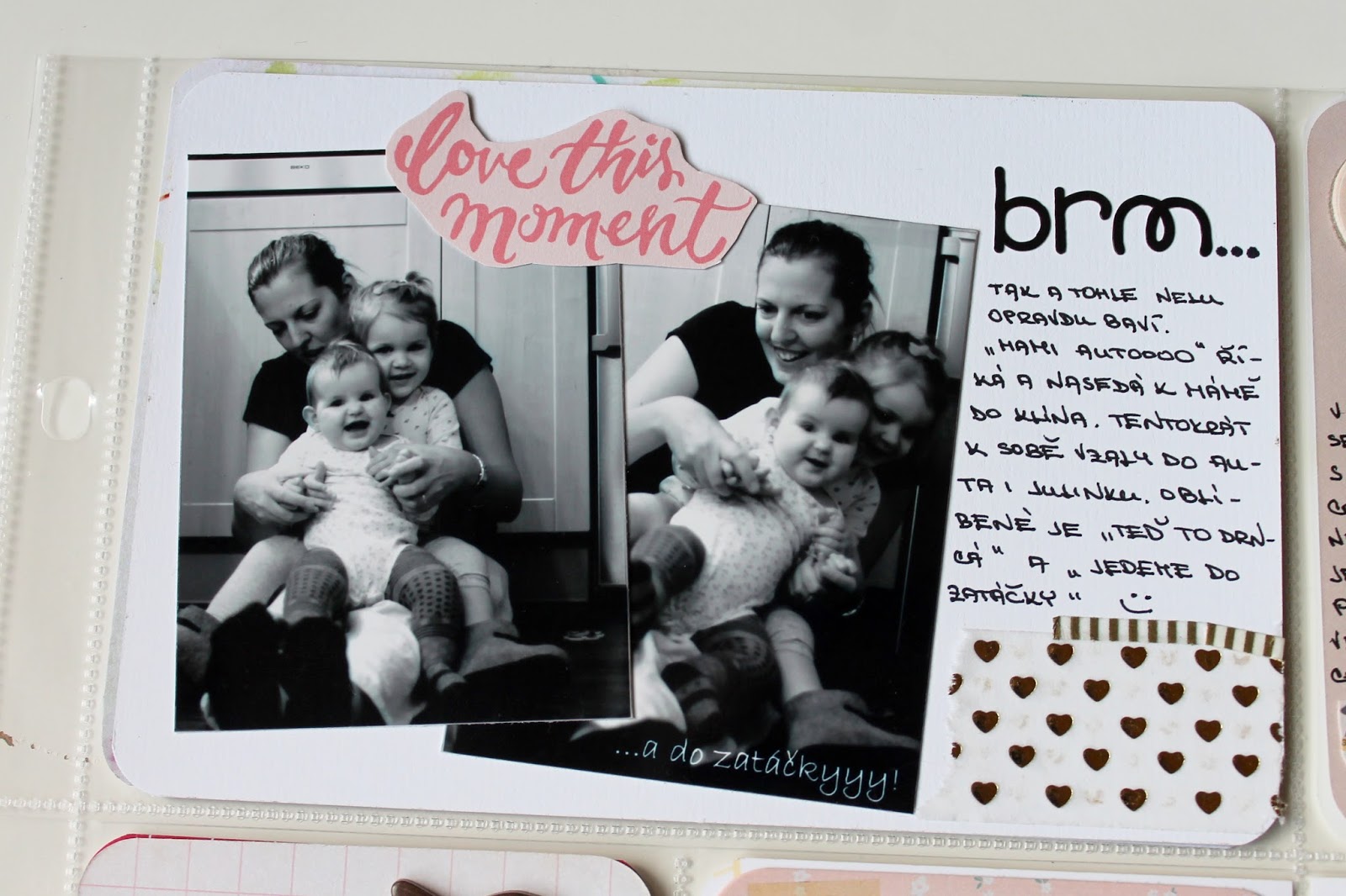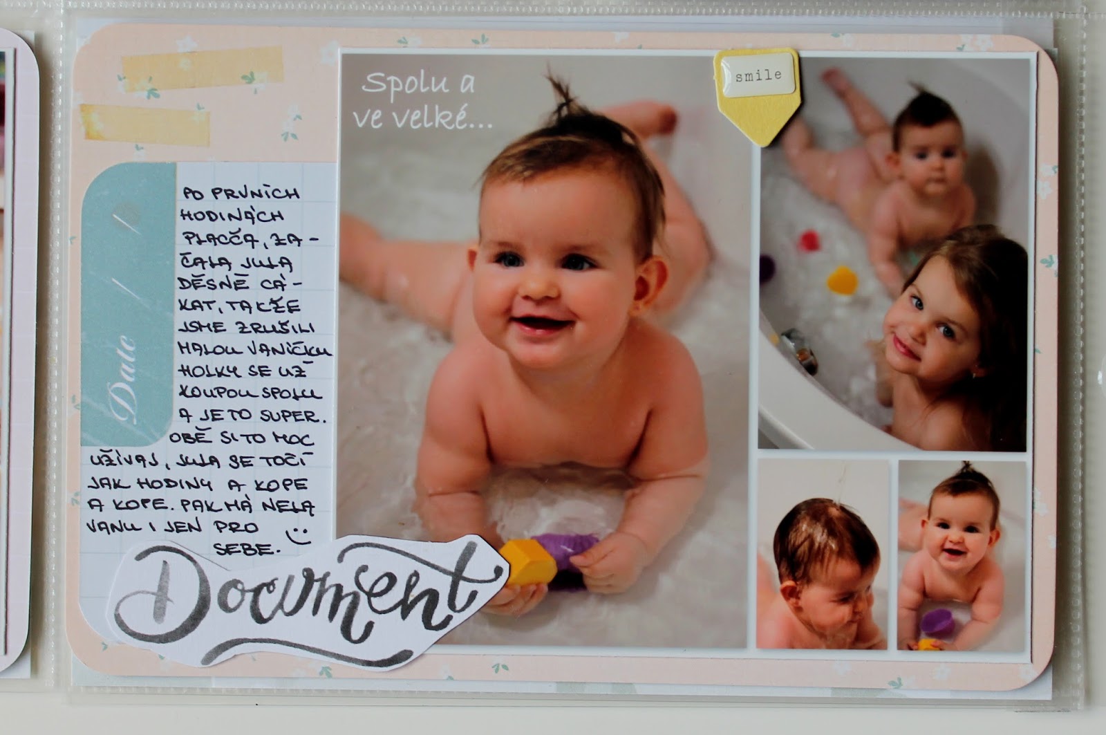 Stránky jsem vzala klasický Design A, protože při dohánění skluzu jsou nejjednodušší. Dost jsem tentokrát kartičky střihala a vypomohla jsem si i jednou samolepicí abecedou.