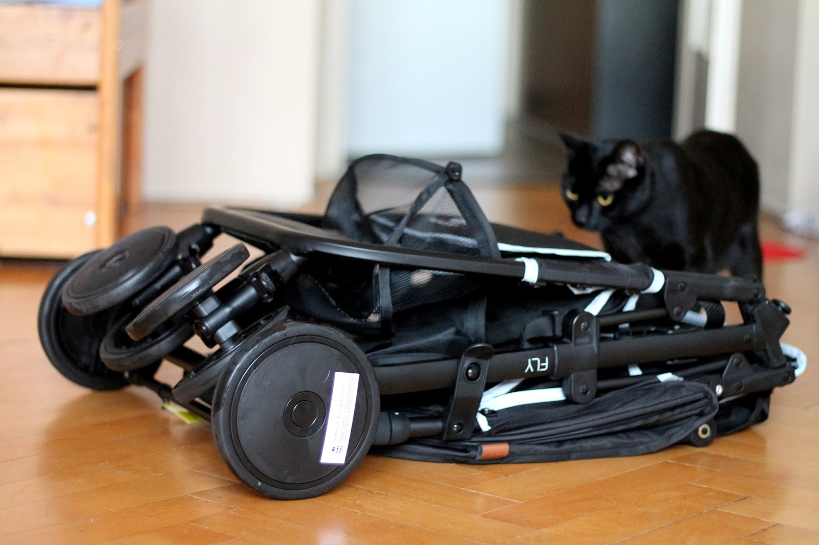 Druhým požadavkem na skladnost není jen skladnost, kdy je složený, ale i rozložený kočár ověšený vším, co používáme. V baráku máme totiž neskutečně, ale fakt naprosto neskutečně titěrný výtah, do kterého se musíme vejít všechny tři včetně kočáru. Zní to jako sci-fi a ve výsledku denně alespoň dvakrát hrajeme výtahový tetris, ale dáváme to.