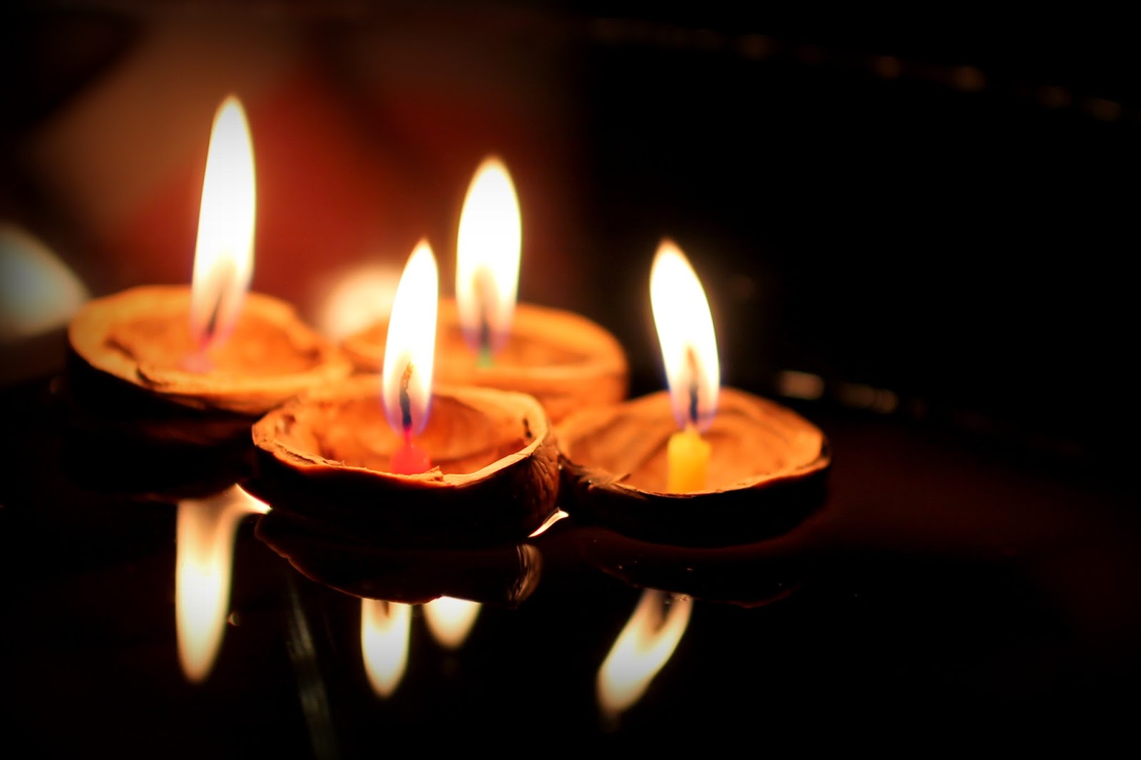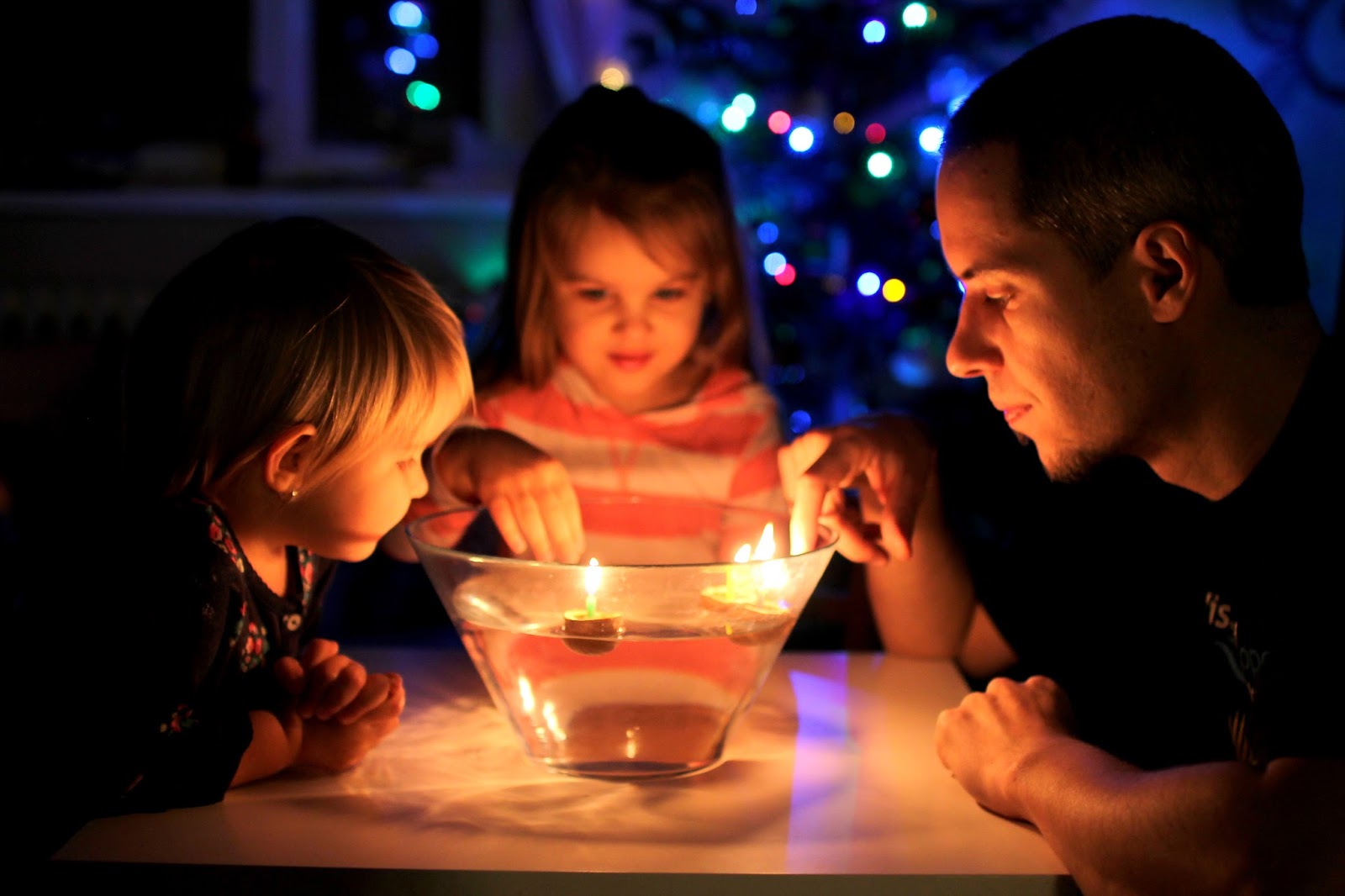 A na Štědrý den? Nespěcháme, nic velkého neděláme a když je počasí, dáme si procházku a po obědě pak nějaký další zvyk. Krájíme si jablíčka a hledáme hvězdičky a taky pouštíme skořápky. Letos jsme si vzali 4 barevné dortové svíčky, holky nám předem rozdaly barvy a čekali jsme, co z lodiček bude :-).