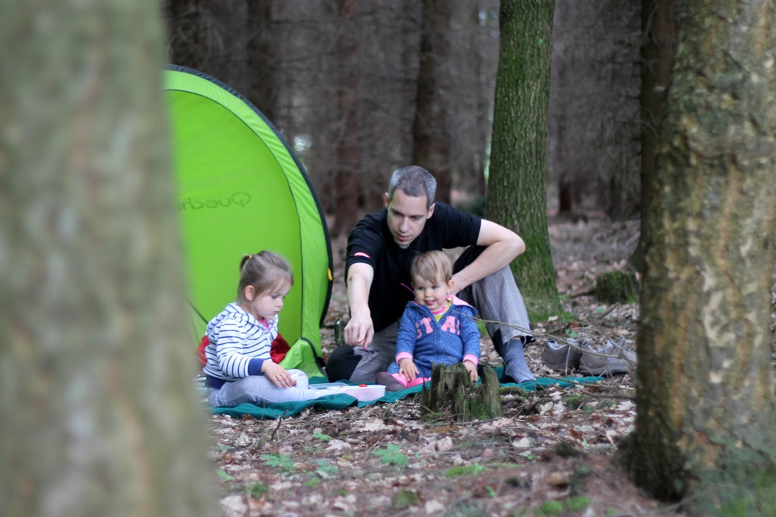 Břežany II nejsou naštěstí daleko od pořádné přírody, takže jsme popojeli jen o kousek dál a rozbalili se v místním lese :-D. Naše první letošní kempování a holek spaní ve stanu. Vůbec pro Juli to bylo úplně první spaní ve stanu, protože vždy spala ve stanu Nelča a Juli v kočáru., Ten jsme ale nebrali, takže nebylo jiné řešení.