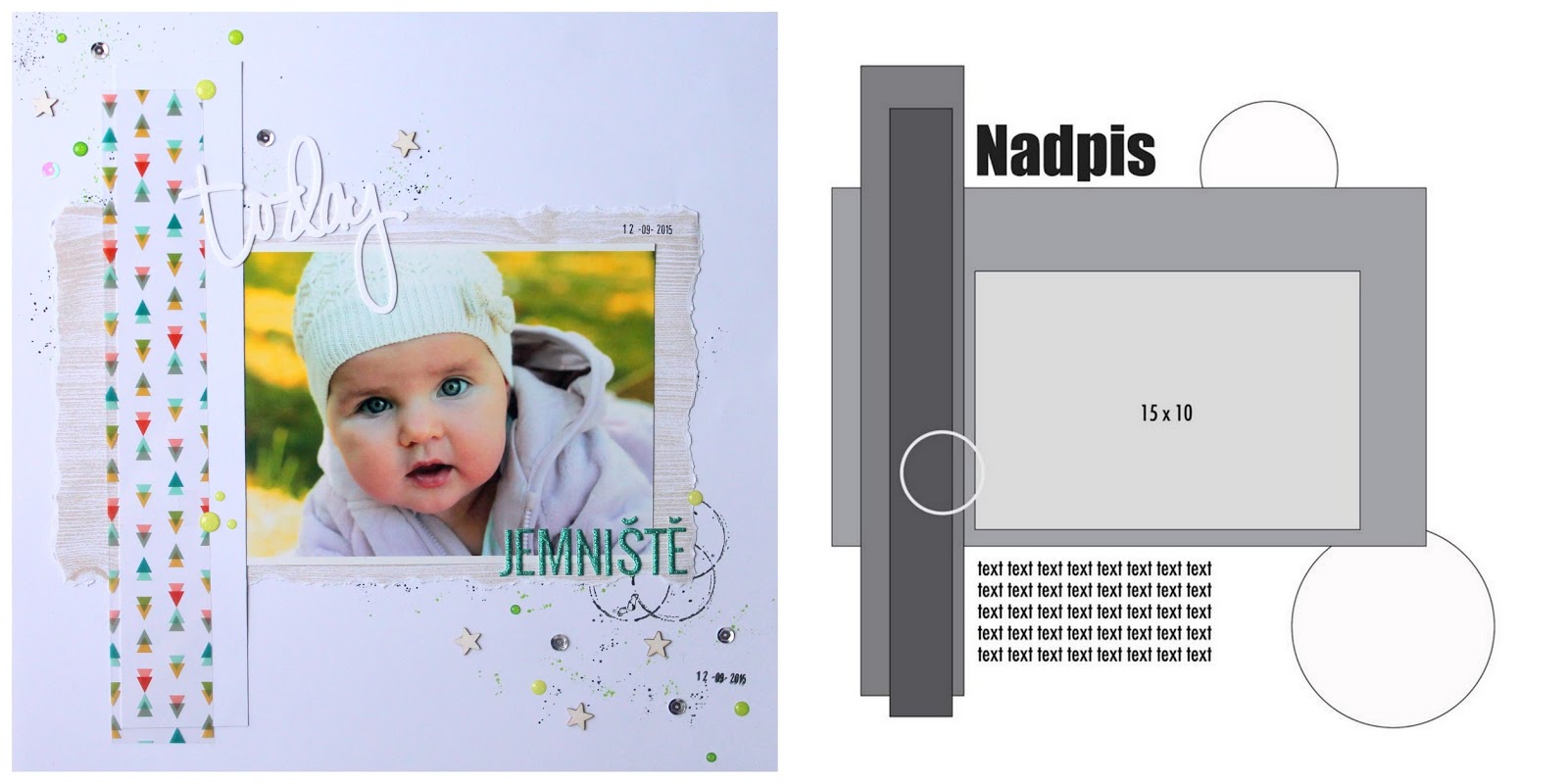 A tak je tady. Má, vůbec první stránka podle sketche. V albu z loňského roku mám ještě dost restů, takže v „mrazivém“ lednu jsem si dnes vytáhla jednu podzimní fotku, kdy jsme vzali děti na houby, ale místo hub jsme skončili na Jemništi.