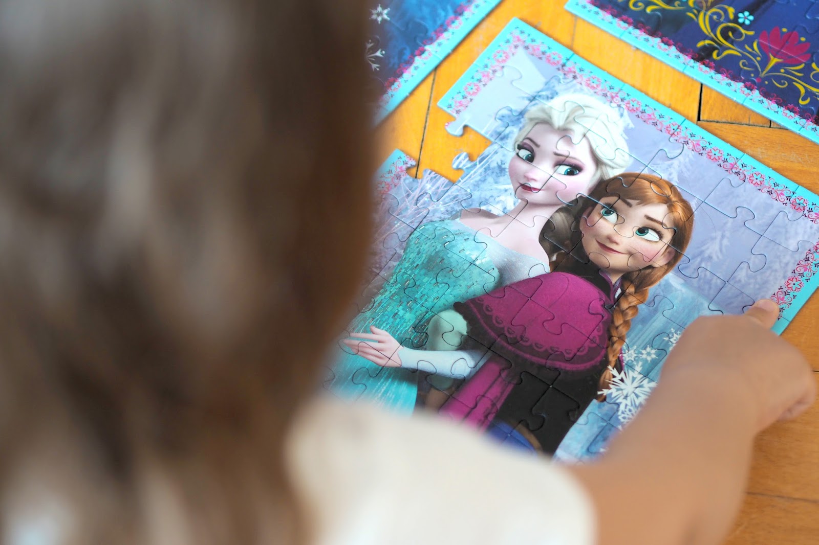 Hravost, trpělivost, prostorová orientace nebo třeba logické myšlení. Všechno to zní nad míru dobře a všechno tohle učí, nejen děti, právě puzzle. Nebo jak se u nás říká, prostě pucle. S nástupem školkového věku Nely, se tohle období rozjelo naplno a ve čtyřech letech zdá se dosahuje svého vrcholu. Každým balíčkem, který nám donese pošta, Nela zarachtá a jakmile se cokoli ozve, rozmýšlí mezi legem a puzzlema :-D. Přitom nám tyhle balíky chodí vážně výjimečně. Letos si je přímo sama přála k narozeninám, takže tohle jediné přání muselo být vyslyšeno. Sehnala jsem holkám ty nejkrásnější puzzle, aby Nela přišla týden před oslavou, kdy už bylo zabaleno, že chce puzzle a přeci jasně že s Annou a Elsou :-D. Hmmm, máme doma přepuclováno :-D.