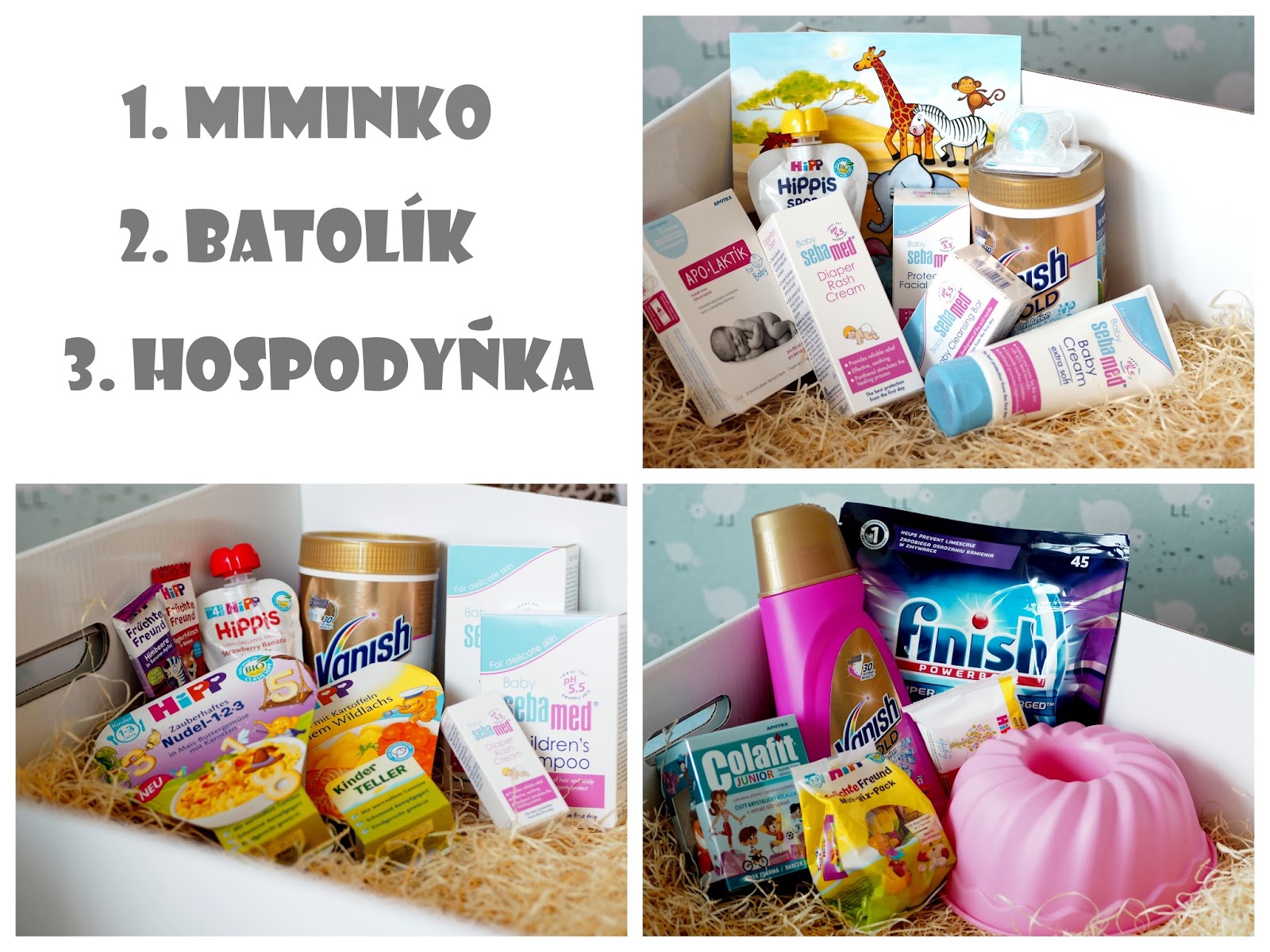 mlsací sbírka od Hipp (kvalitní příkrmy, cucíky i oplatky), kosmetika Sebamed a ať máte naklizeno, přidáme další Vanish na skvrny, ať děti můžou vesele prasit :-D, že?