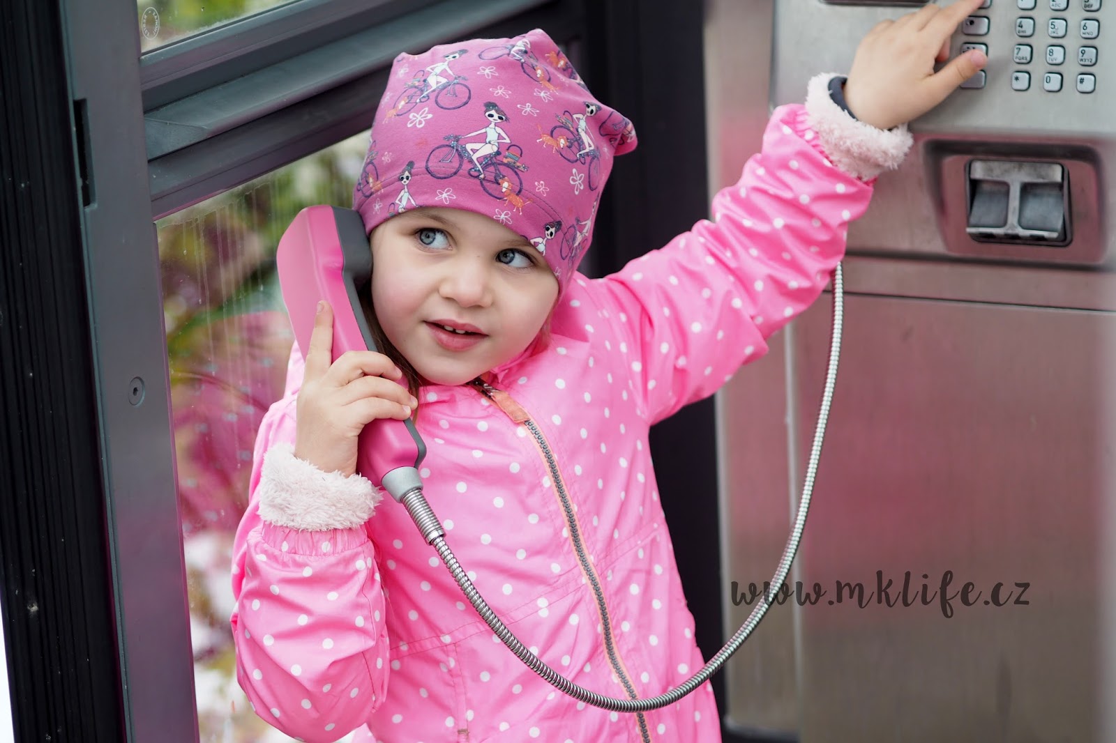 A jestli něco bavilo holky ještě víc než hřiště, byly to budky s růžovýma sluchátkama, takže z každé jsme volali domů, že tu padají trakaře :-D. Takže i cesta už byla docela zábava, a když na ně šla priduvá nálada, počítali jsme větrné mlýny, kterých bylo všude hafo.