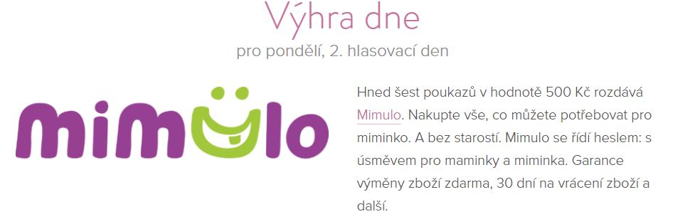 Dnes si hned šest hlasujících odnese poukazy na nákup do Mimulo.cz