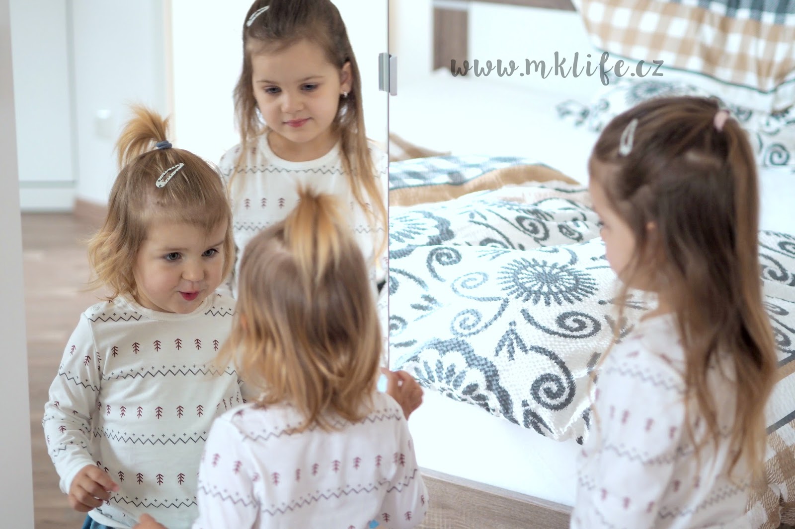 Holky spaly poprvé spolu na jedné manželské posteli a líbilo se jim to. Nejvíc zábavy dělaly zrcadla ve vestavěných skříních, kde holky postávaly a vypadaly jak by v životě nepotkaly zrcadlo. Pro děti tu dokonce byly tři šuplíky plné dětských her a knížek. A to byste panečku koukali, jak šla Julince ta němčina :-D. Četla jednu za druhou a převyprávěla nám celý děj.