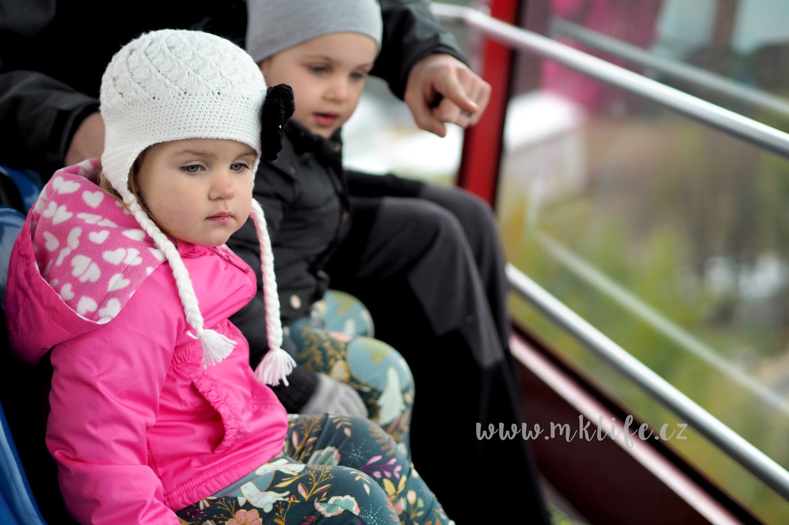 Tady už drandí Nela v další půjčené zimní bundě, jen díky nim jsme myslím vydržely zdravé. Atrakcí i pro malé děti je vážně hodně, jen i na koníkovi jsou vidět zbytky skoro květnového sněhu a samý déšť. Dětem to ale nevadilo a Nela si dala na koni několik koleček. Koníci jezdili parkem, takže vám děti odjedou do lesíka a jen si hopsají na oříkovi, tak to pro Julii úplně nebylo, ta by tam někde uprostřed sesedla a už bych jí nenašla :-D.
