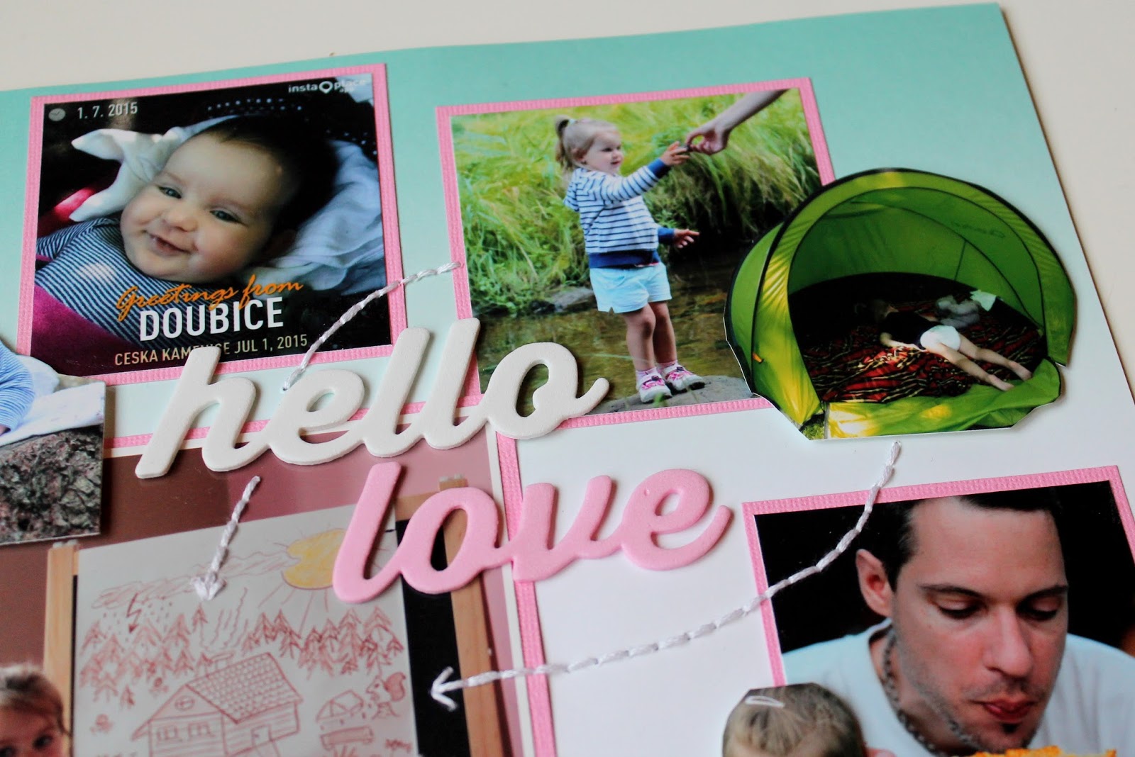 V tomto týdnu jsem nalepila hned čtyři stránky a dvě z nich můžete vidět již dnes. Protože předcházela ponorková stránka, musela i v tomto týdnu být velká třicítková stránka. Tu jsem nakonec vyplnila trochu atypicky. Protože Julinka přes den ještě hodně spí, je potřeba udržet Nelinku alespoň trochu umírněnou (rozuměj neřvoucí), a tak si hledáme zábavu jako čtení, malování a jiné. Tentokrát jsme malovali a mě napadlo, že bude hezké si namalovat naší dovolenou.