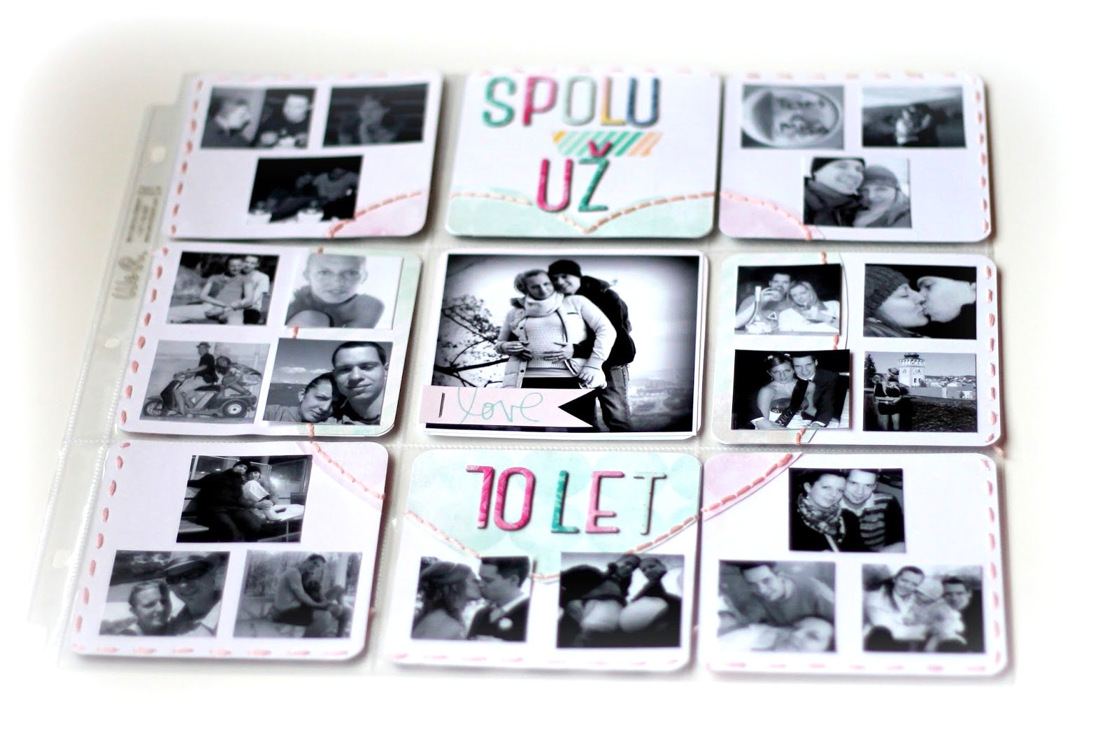 Ke kitu Dreamy se mi moc líbí samolepicí abeceda Serendipity Ooh La La, kterou jsem použila na „nadpisy“ k samotné stránce. Na závěr stačilo obšít stránku po obvodu, rozmístit a přilepit fotky a zašoupat do kapes.